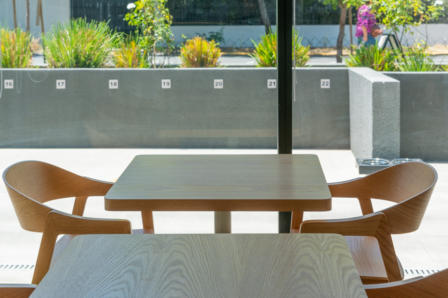 En THE COFFE se uso nuestra linea de sillas Berlin que son sillas muy limpias cumpliendo con el aire minimalista que ellos buscaban.
